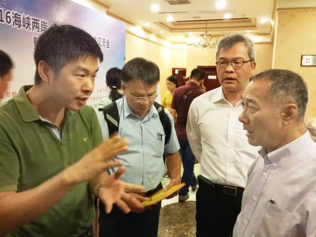 ↑ 工作人员现场为两岸嘉宾讲解产品